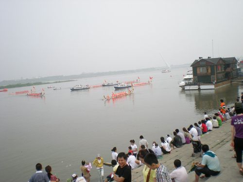 翌朝7時から、投宿したシャングリラホテルの眼下の松花江で「龍舟比賽」(ドラゴン・ボートレース)があると聞いたので、早起きして行ってみた。屈原を慕う人々が多くの舟を出して遺体を探したという伝えが龍舟比賽の由来だとされる。