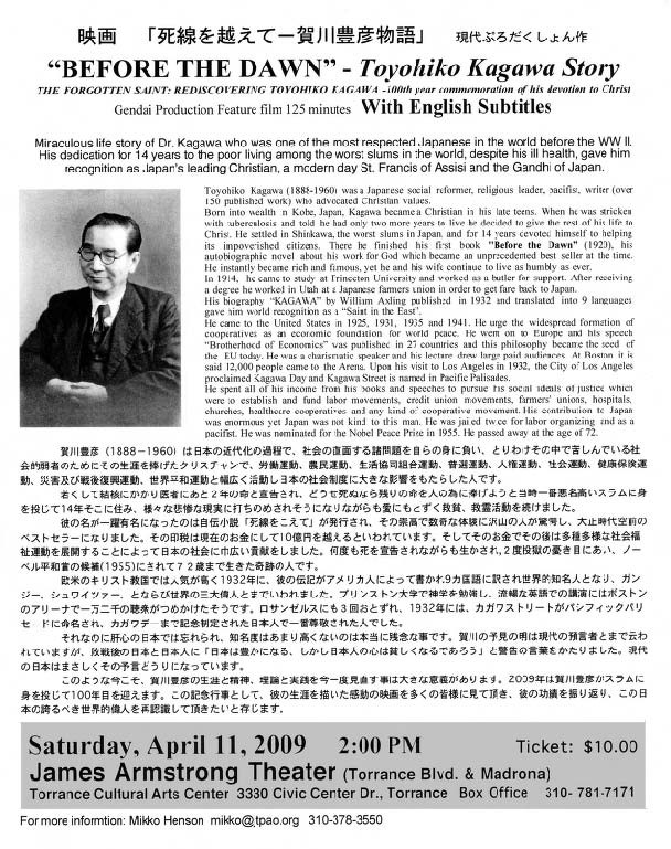 賀川豊彦献身100年記念事業実行委員会 東京プロジェクト 事務局 〒156-0057 東京都世田谷区上北沢3-8-19 賀川豊彦記念 松沢資料館内 神戸プロジェクト 事務局 〒651-0022 神戸市中央区元町通5-1-6 神戸共栄火災ビル7F