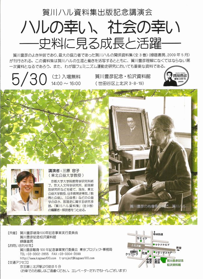 トップ>パンフレット 賀川ハル資料集出版記念講演会 松沢資料館 ハルの幸い、社会の幸い
