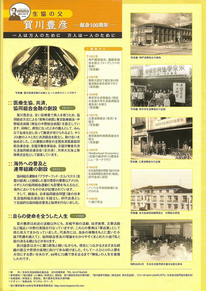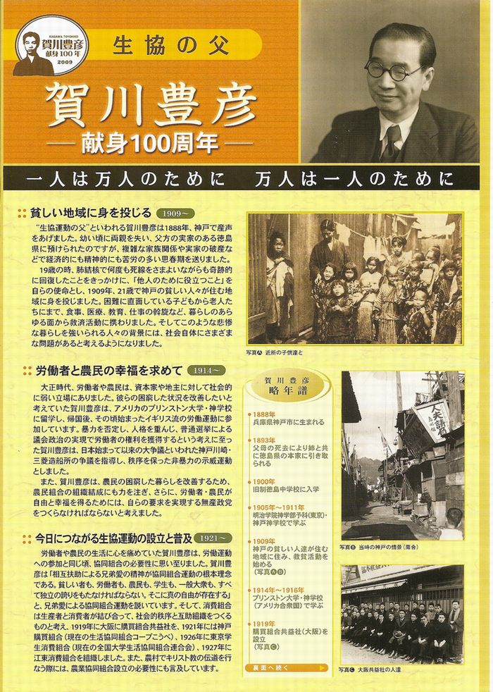 生協の父賀川豊彦 一人は万人のために 万人は一人のために 日本生協連合会
